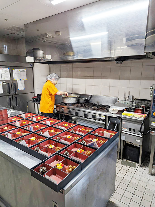 当施設では、厨房での調理を専門のスタッフが行い、日々の食事を提供しています。